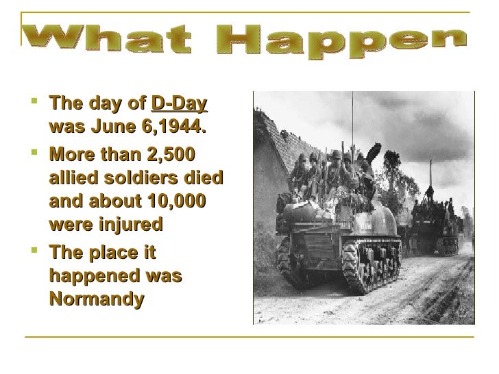 The day end was launched in. When an elite group of american soldiers are ordered to take out a series of german machine gun. A turning point in world war ii. D day was the day german oppression was coming to an end. They pushed their way inland allowing more troops to land over the next several days.